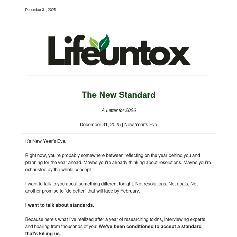 Because here's what I've realized after a year of researching toxins, interviewing experts, and hearing from thousands of you: We've been conditioned to accept a standard that's killing us. |